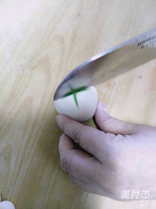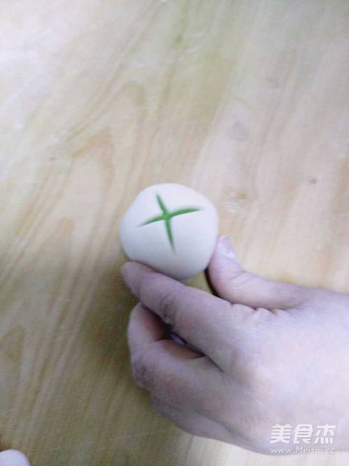 18将包好面剂的剂口朝下,切十字花刀。