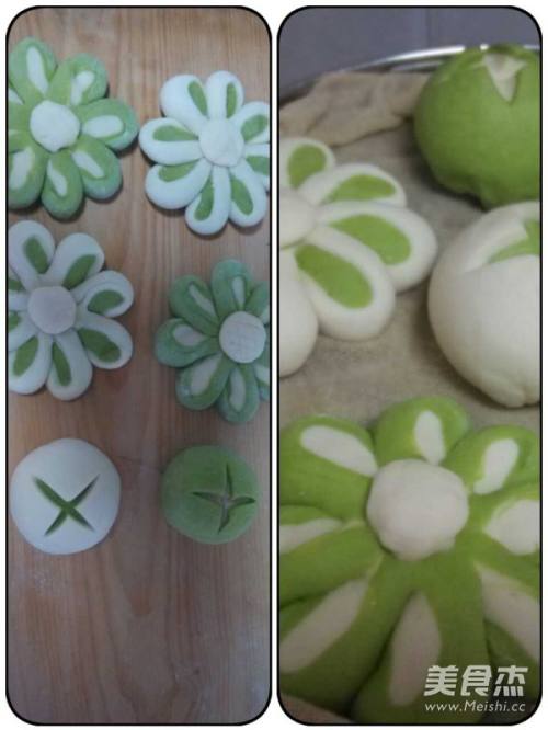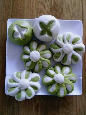 太阳花盛开在餐桌上,用菠菜汁和面蒸出的双色馒头,营养丰富,造型别致,面香浓郁口感喧软,全家人都喜欢吃。
