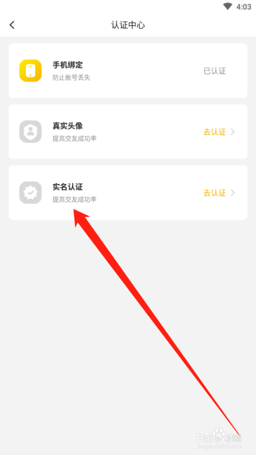 点击实名认证图标,进入认证界面