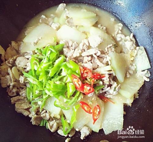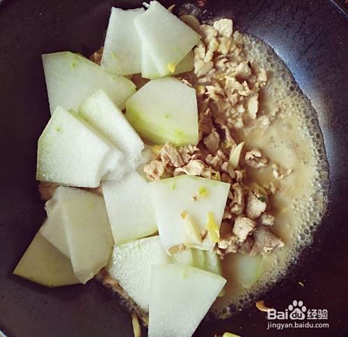 再加入备好的冬瓜和适量食用盐,翻炒均匀至炒熟,关闭火源。