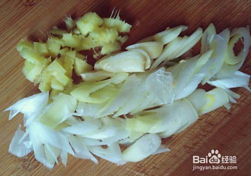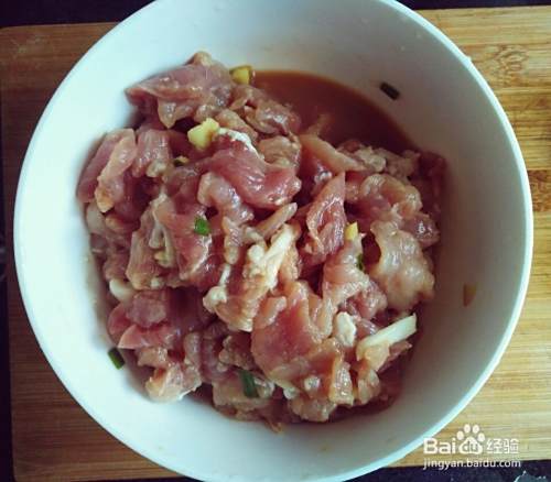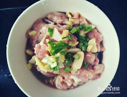 ①猪肉:用温水洗净后,切成片状,放于容器中;