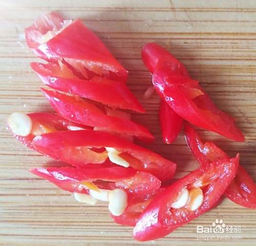 ⑦红辣椒、青辣椒:清洗干净后,切成细辣椒圈,备用。