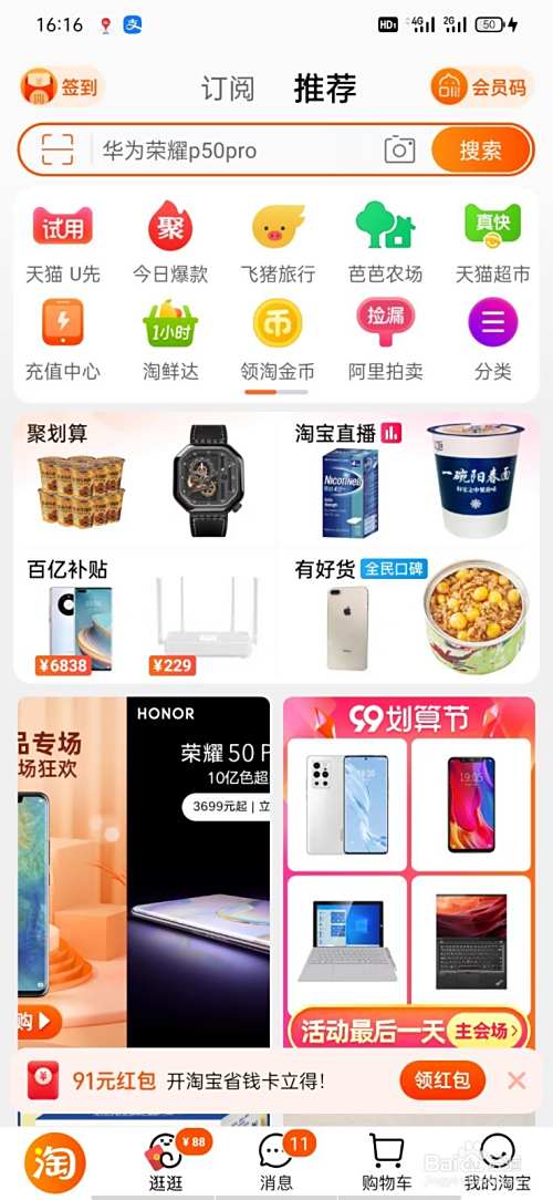 打开淘宝,后点击个人淘宝(右下角第一个)