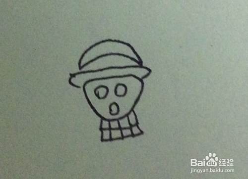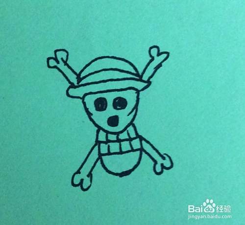 接下来画上四个骨头,分别在帽子两边和牙齿两边。