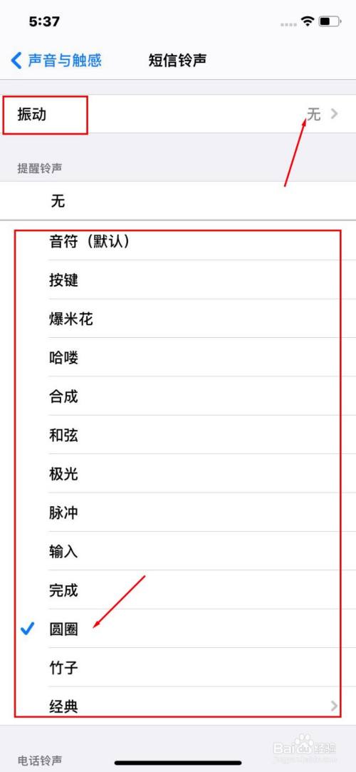 在这里选择任何一款自己喜欢的铃声,也可以点击屏幕上方的【振动】,将其开启。