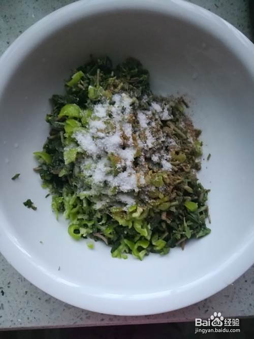 把切碎的马蜂菜和辣椒里面加入适量的盐和五香面。