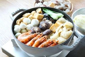 盖上盖子,煮开。可以看到鱼丸、油豆腐明显膨大,鲜虾完全变色