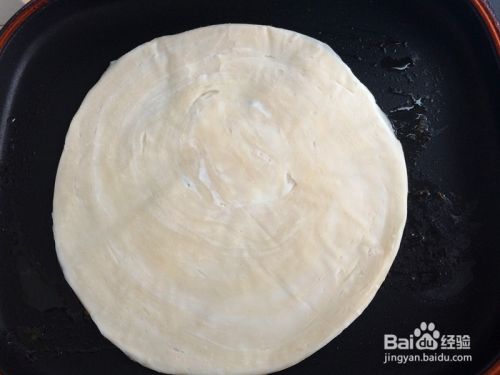 手抓饼从冰箱冷冻室中拿出,平底锅中不要放油,直接把手抓饼放在锅中。因为手抓饼中含油量很大。一面烙至金黄再翻面,烙另一面,烙至金黄,盛出放在盘中。