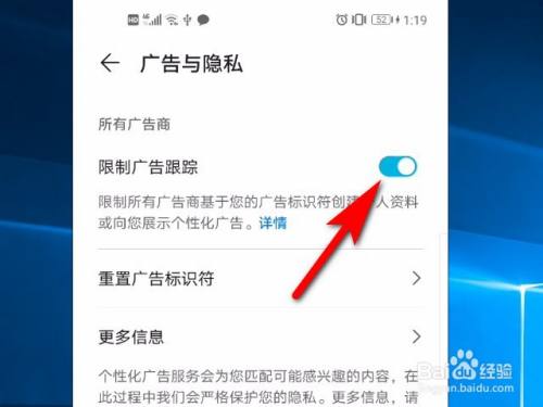 本经验介绍在华为手机使用中,如何打开限制广告追踪功能?