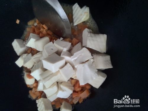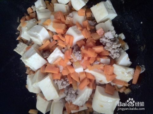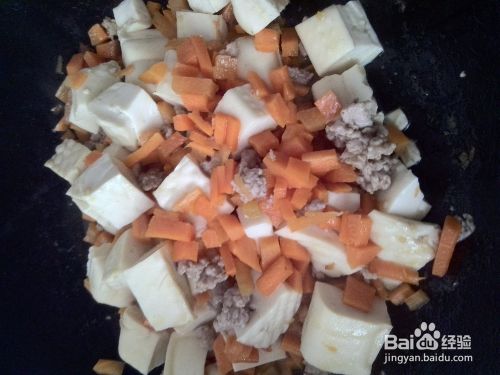 豆腐猪肉丁炒胡萝卜是道小孩子爱吃的家常菜。