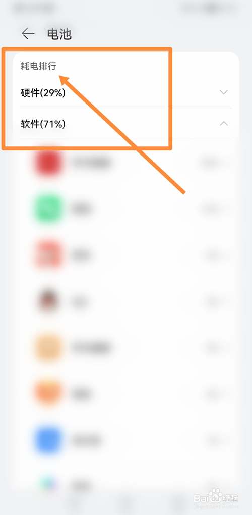 进入电池页面后,点击页面上的耗电排行榜,如下图所示: