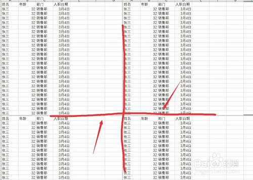 在使用EXCEL处理数据时,需要多窗口同时查看同一工作表时,可以使用窗口拆分功能。