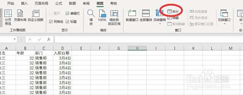 在“视图”选项卡下,点击“拆分”按钮。