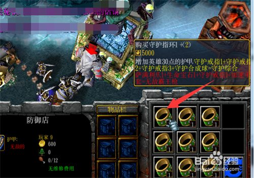 完事后,在旁边的装备店,购买一个守护指环。此时,保证第二波兵线到基地,然后回去轻松防御。之后去合一个装备,然后慢慢的合成专属……