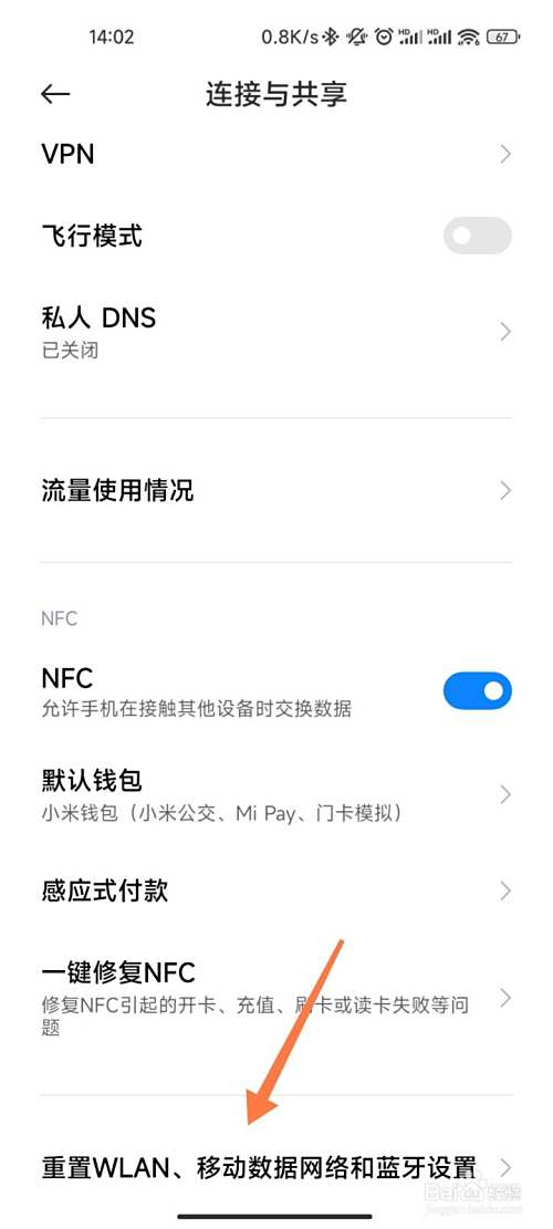 在页面下方点击【重置WLAN、移动数据网络和蓝牙设置】。
