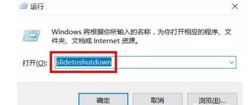 2、输入命令“slidetoshutdown”(翻译过来大意是滑动关机)