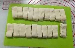两块叠一起,用筷子按压一下,稍拉长,底部粘一起。