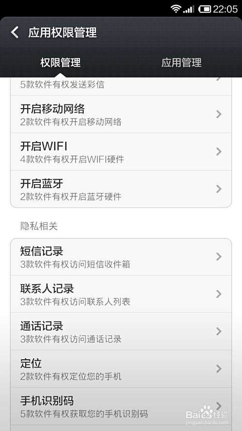应用权限管理,如图: