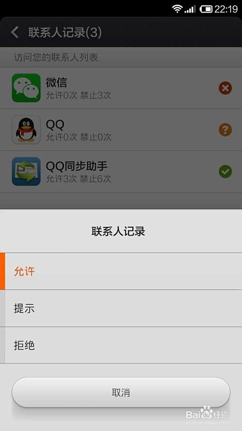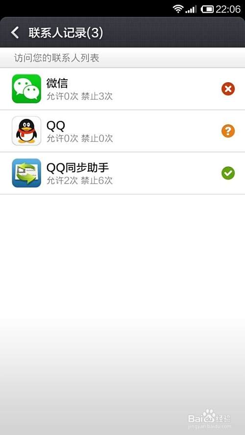联系人记录,原来是老婆安装软件是没有点击运行,QQ助手限制。如图: