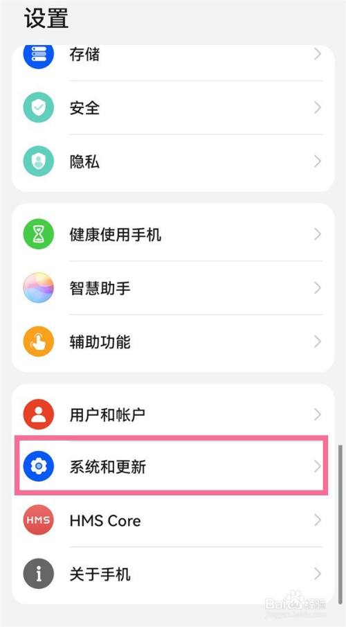 在手机设置菜单中点击【系统和更新】。