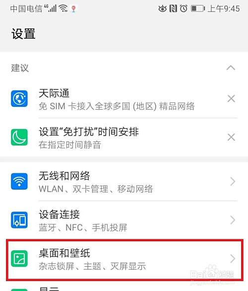 在【设置】功能页面中,找见【桌面和壁纸】功能按钮,点击启动【桌面和壁纸】功能,进入【桌面和壁纸】功能页面。