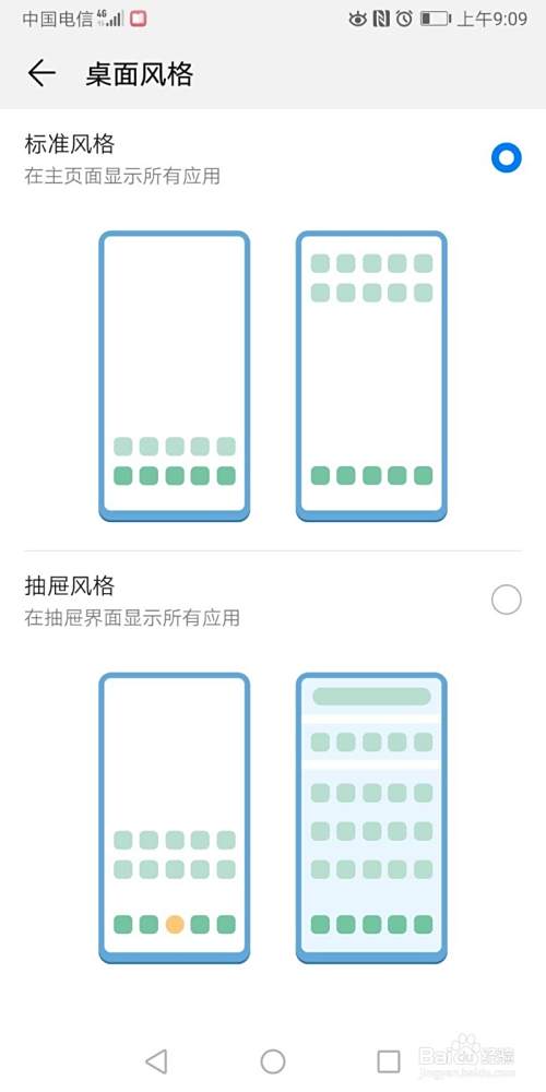 选中后,等待片刻,桌面风格变为【抽屉风格】,自动返回主屏幕,这样就设置好了。