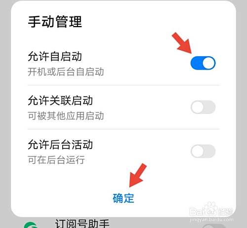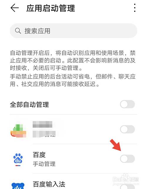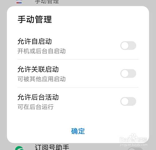找到相应APP,点击它右边按钮直到弹出【手动管理】对话框