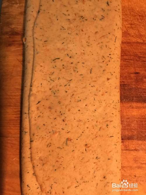 猴头菇粉末,面粉,干酵母,小苏打,水,黄油,糖粉,盐,香葱粉混合,揉成面团。面团较硬,手揉15分钟合适。面团放盆里醒发。(忘记拍照了)