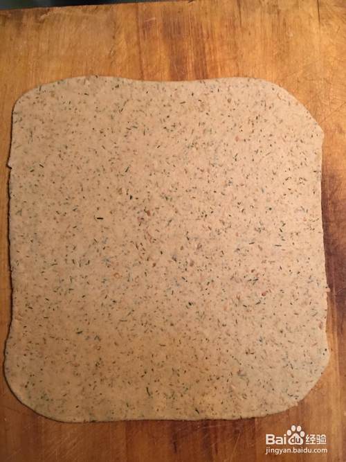 将面片另1/3折叠过来成三层,擀开成薄面片,再次折叠成三层;再重复擀开折叠,再擀开