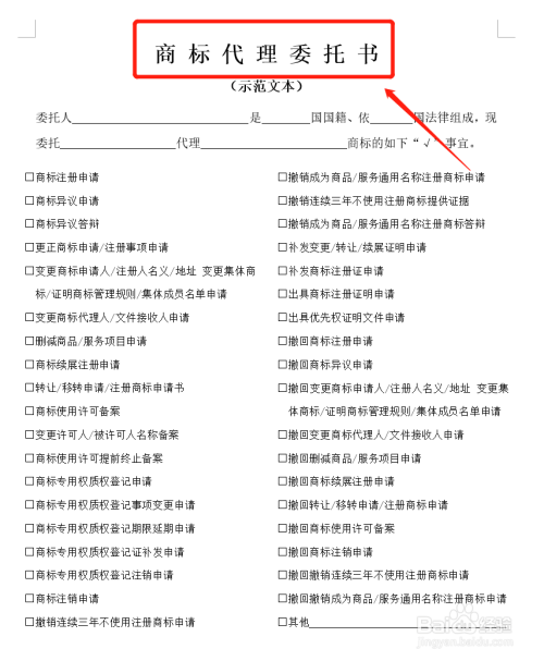 准备好代理委托书(样式如下)及其他相关资料,代理机构完成申请。