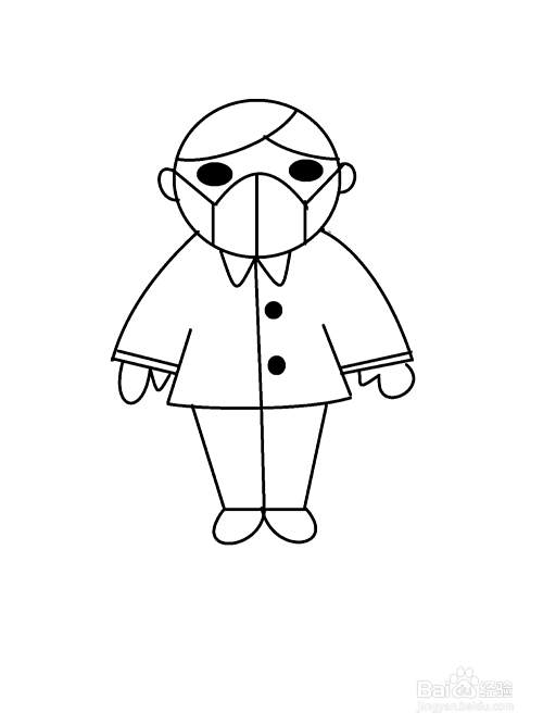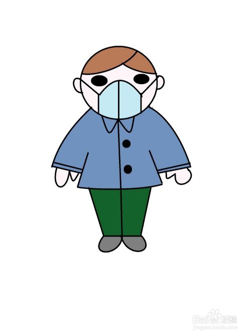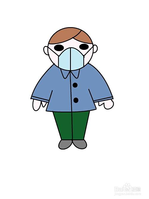 最后涂上颜色,这样戴口罩的叔叔就画好了。