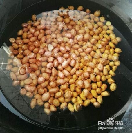 1、取适量的花生米,用水冲洗干净,浸泡2~3分钟,沥干水分备用。过水一是为了洗去灰尘,二是为了让花生米下油锅时受热均匀,不容易炸焦糊。
