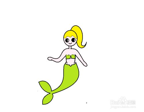 最后涂上颜色,简单好看的美人鱼就画好了。