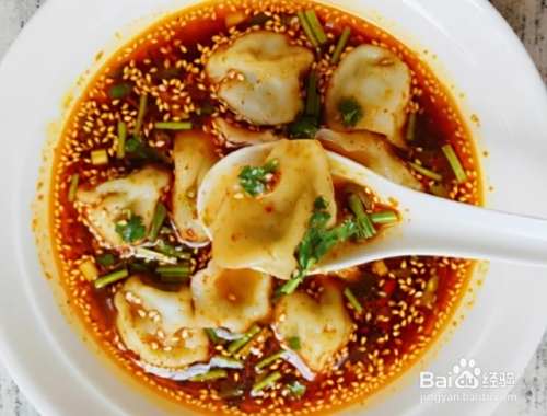 将饺子煮熟后,先舀一勺饺子汤倒入料汁碗中,冲开后,捞出饺子,拌均匀,酸汤饺子就做好了