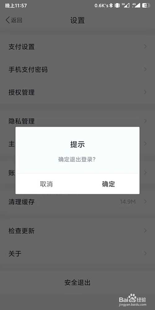 在设置界面最下方,找到安全退出选项,点击后界面中出现确认弹窗。