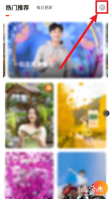 进入百变p图主界面,点击右上角“圆脸头像图标”进入模板界面。(如下图)