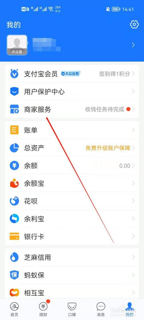 1、点击进入支付宝,点击进入我的,点击进入商家服务