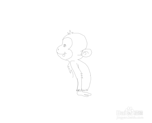 再在画好的头部下面再画出猴子的身体,并再画出猴子的一只胳膊及手部,如图所示: