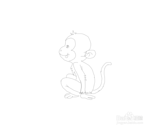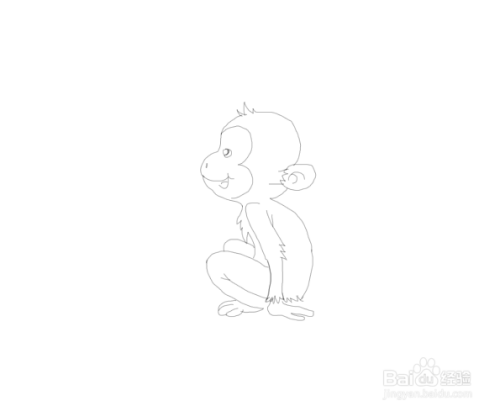 再在身体的基础上再画出猴子的两条腿部,如图所示:
