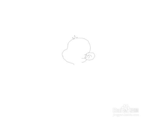 先画出猴子的头部,然后再画出猴子的耳朵,如图所示: