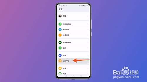 在华为手机设置界面之后,选择通知中心并打开。