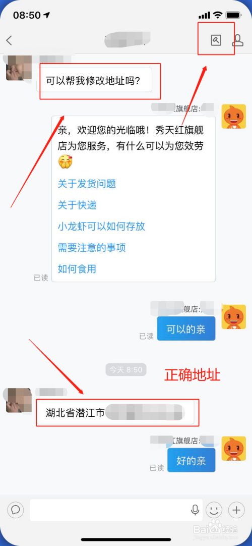 跟客户沟通后了解地址更改为“湖北省潜江市xxxxx”,点开右上角订单一栏