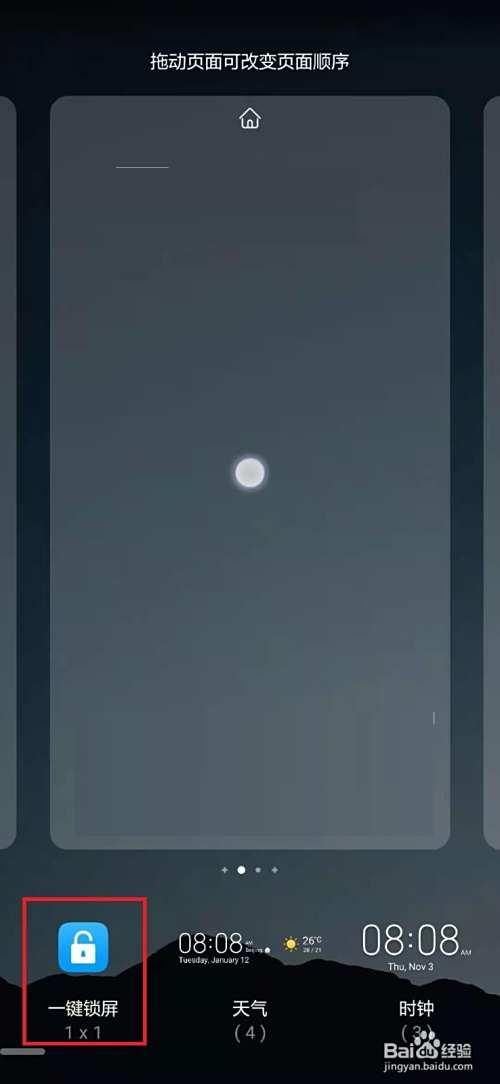 在华为手机上,通过手机桌面管理添加桌面一键锁屏快捷键的方法。