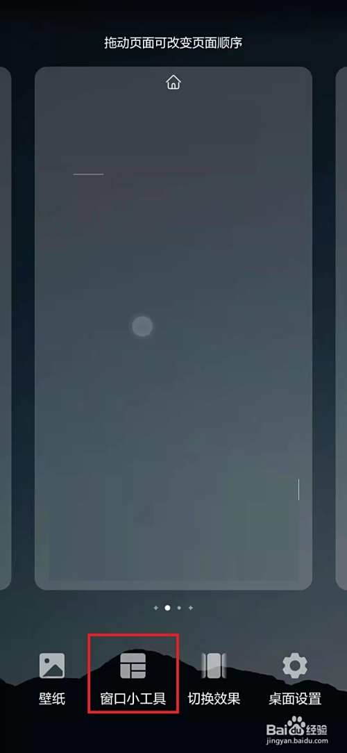 在华为手机桌面,双指捏合进入桌面管理操作页面,选择【窗口小工具】。