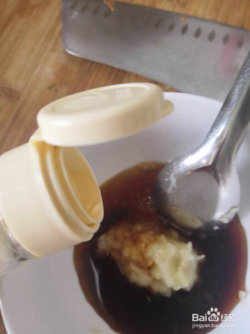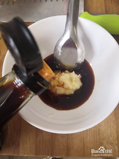 倒入凉拌酱油,让蒜泥变得更加有味道。