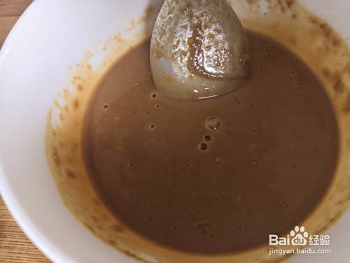 使劲搅拌,如果麻汁还是很粘稠,可以少加一点纯净水。