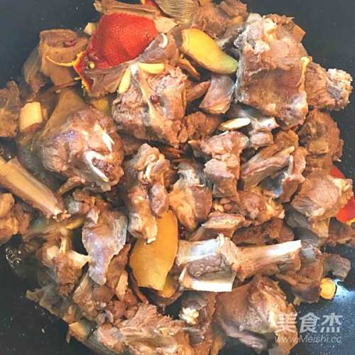 2羊肉切块,洗干净。(羊肉切块时,不要切太小,因为会缩水。)锅内加水,下入羊肉片加些料酒烧开,撇去浮沫,然后捞出羊肉备用。然后把锅里的水倒掉,把锅重新洗干净