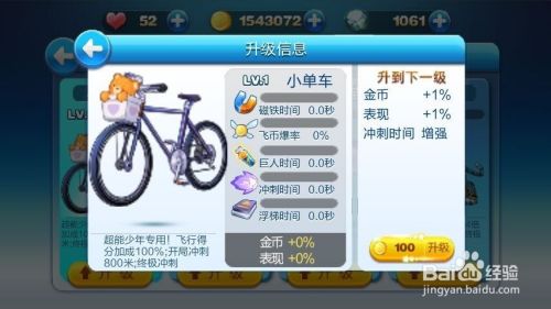 小单车说白了就是个自行车,比小绵羊还烂的车,小绵羊起码是个电动车了。但是小单车虽然简朴,但是他也有他独特的技能飞行得分加100%,也就是飞行得分二倍,同时拥有紫翼神龙的开局冲刺800米和终极冲刺。