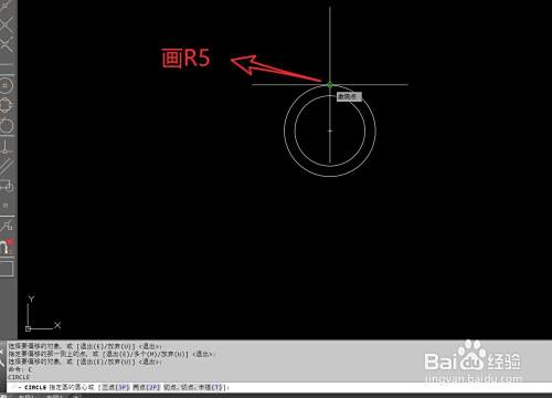 3.以辅助圆的顶部象限点为圆心,画一个R5的小圆,如图
