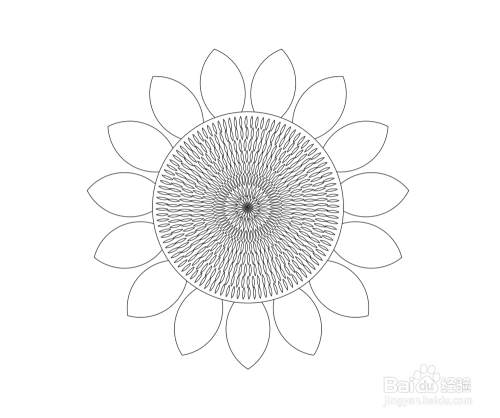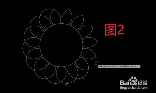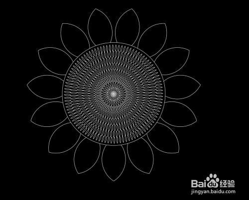 8.用【环形阵列】命令,以R10的圆心为中心,把瓜子阵列成图形,用【复制:co】命令,把瓜子复制在阵列好的图形间隙中,如图,再阵列,重复以上步骤,向阳葵就画好了!